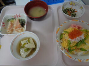 先日はごちそうメニューで蟹チラシと蟹の天ぷらが