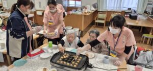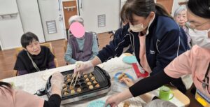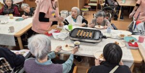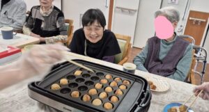 先日ご入居者のフロアでおやつにたこ焼きが