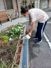 ガーデニングの水やりを本日は職員がしております☺