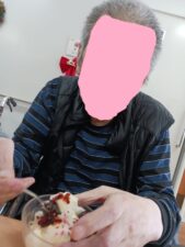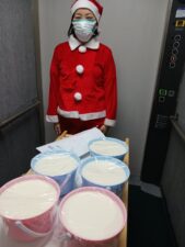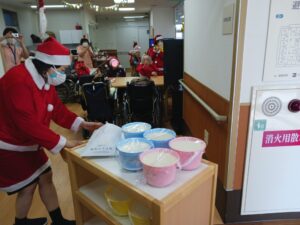 サンタ🎅からプレゼント🎁が渡され、おやつにはプリンが